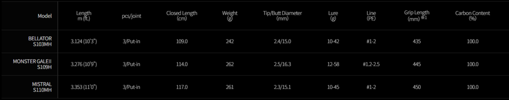 BLACKFIN 系列中最長、同時也是彎曲最為順暢的一款。在落差大、立足點高且陡深的場域,能有效應對收線前突如其來的咬口,搏魚時透過優異的吸震緩衝能力抑制不必要的掙扎,面對突發的高速衝刺也能穩定承受,在嚴苛條件下,能明顯感受到更高的咬口成功率與更低的脫鉤風險。