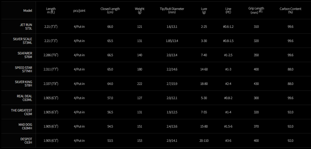 適用魚種範圍廣泛,從 鯰魚、黑鱸 等淡水魚種,到 黑鯛、海鱸 等海水目標皆能勝任,是一支真正的全能型竿款。