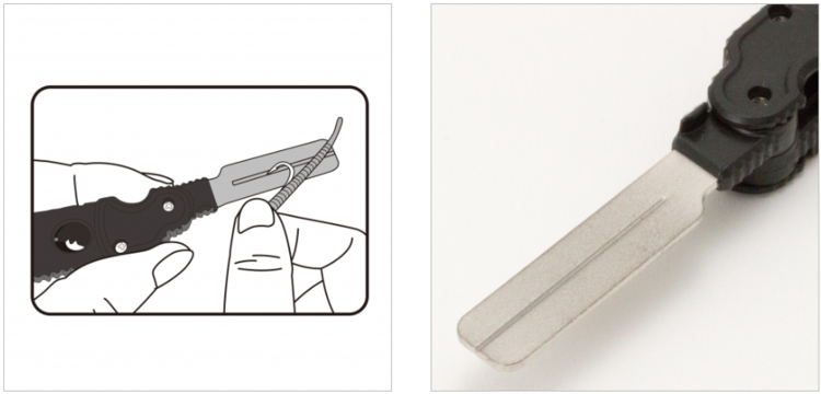 The fine side is grooved for easy grinding of small hooks for light-game use.