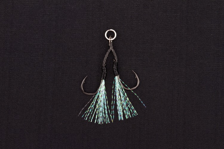 本體以「DJ-90 輕型輔助鉤」為基礎,加上綁有閃光纖維絲的設計。這些纖維有時能模擬小型餌魚,有時則模擬浮游生物,強化誘魚效果。同時在魚吸餌的一瞬間也發揮輔助作用,使鉤子更容易被吸入口中,提升上鉤率!