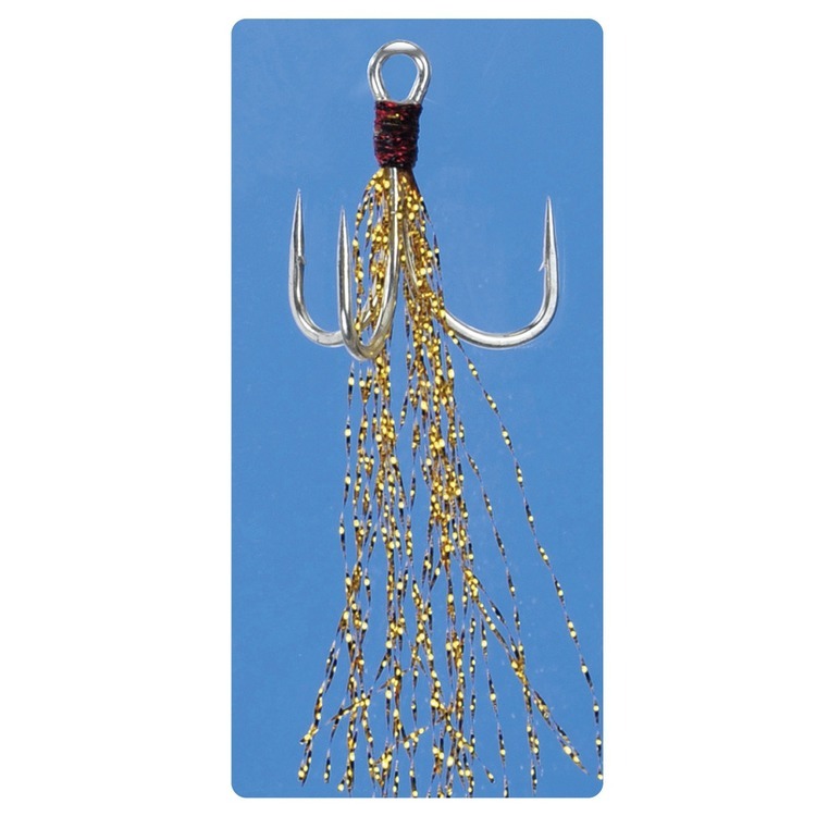 搭載金色或銀色閃絲,可產生一般羽毛鉤難以展現的強烈反光閃爍效果,大幅提升誘魚能力。