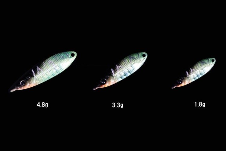 提供三種規格,方便針對餌魚種類、目標魚種與裝備搭配進行選擇。不僅可用於黑鱸,也能對應藍鰓魚等各種淡水掠食魚,是萬用型的淡水誘餌。