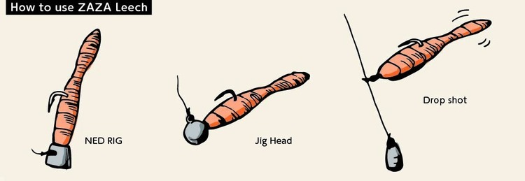 柔軟的素材、天然香味與靈敏的泳姿,使 Zaza Leech 特別適合在低溫或魚況不佳的時節搭配汲頭鉤使用,展現絕佳效果。