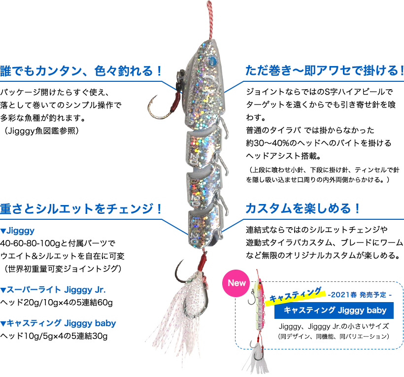 Jigggy Jr. :重量:60g    / 頭部 20g + 身體 10g x4