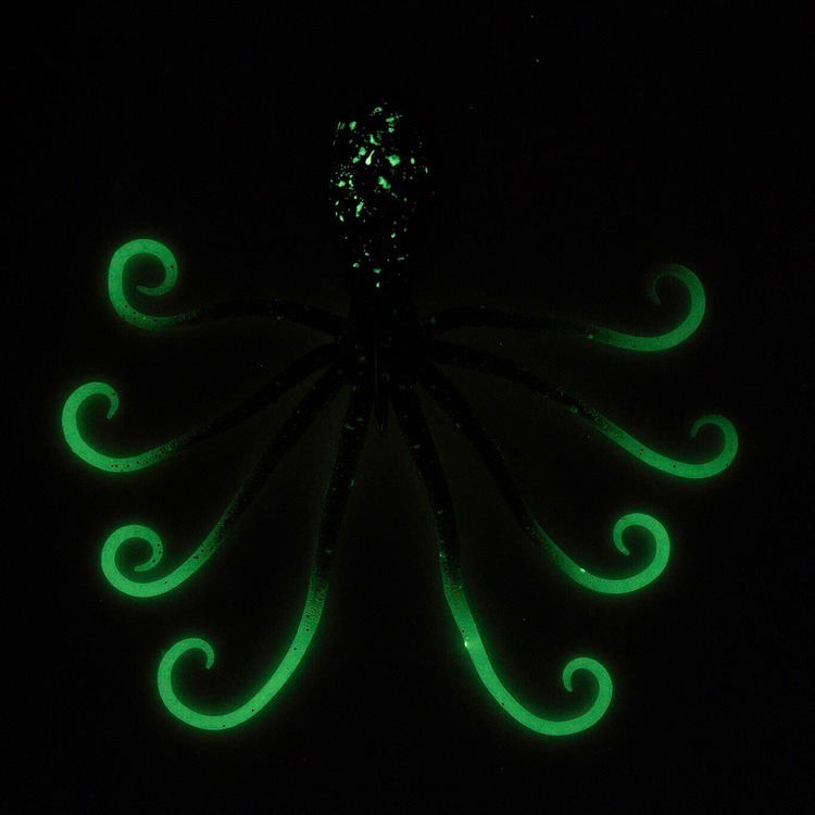 TPE 材質觸手對水中有良好的抓地力,並以平滑的動作刺激目標觸手呈現螢光色,即使在渾濁的水域、深水區和夜晚也能形成迷人的輪廓