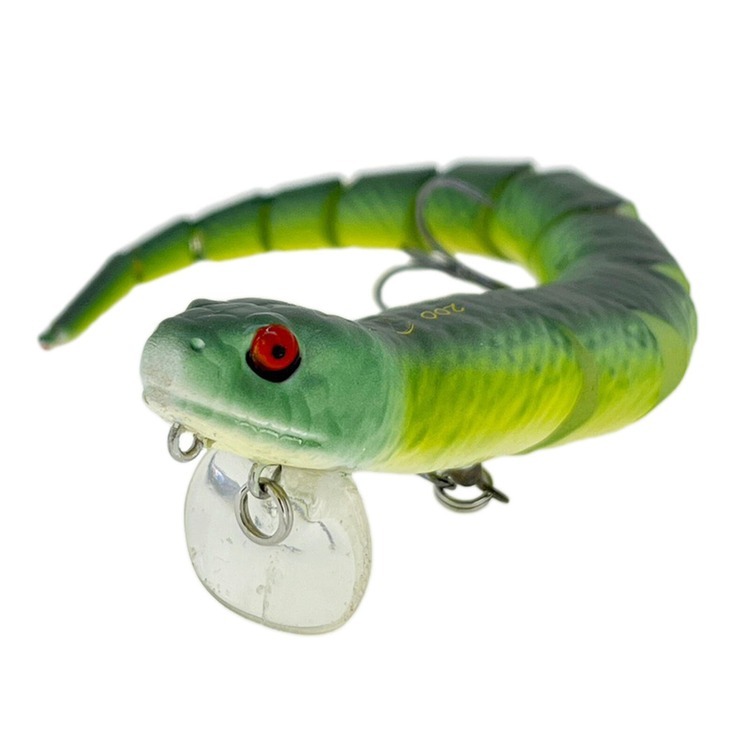 7. 逼真誘魚效果:誘餌逼真猶如一條幼蛇在水中滑行,常能引發黑鱸或鱧科類等掠食魚的強烈攻擊慾望。