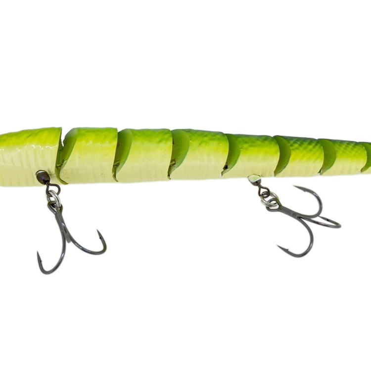 2. 多節關節+線纜連結設計:使用多段關節搭配獨特線纜連接系統,讓誘餌展現自然流暢的蛇形「S」泳動。