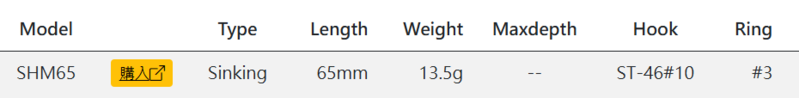 在小巧的身體中裝載充足的配重,使其能以筆直的軌跡精準打到目標點。低速時也能穩定游動,高速時則展現出色的穩定性。此外,在下沉時保持水平姿態並伴隨細微顫動。從水面下到深場都能自由攻略,掌握多樣水層。
