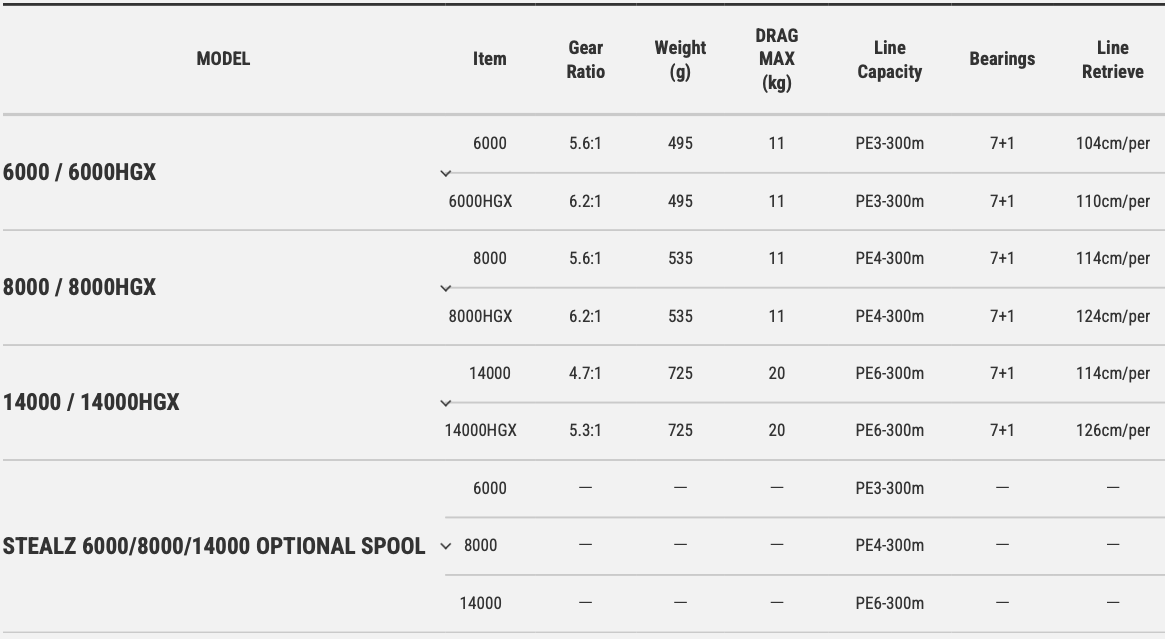 STEALZ 專為在各種釣魚場合中的出色表現而設計,例如船釣拋竿、鐵板釣、岸釣和岩石海岸釣魚。只有面對大魚的搏鬥時,就能感受到這捲線器釋放出巨大潛能。