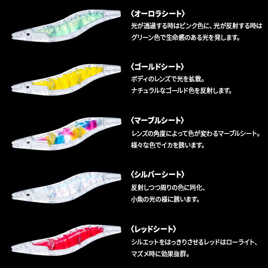 內層薄片,內層薄片的反射光透過鏡片變成生命感豐富的自然光線,引誘烏賊。