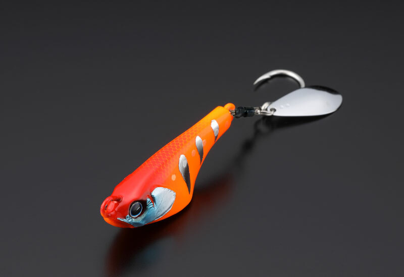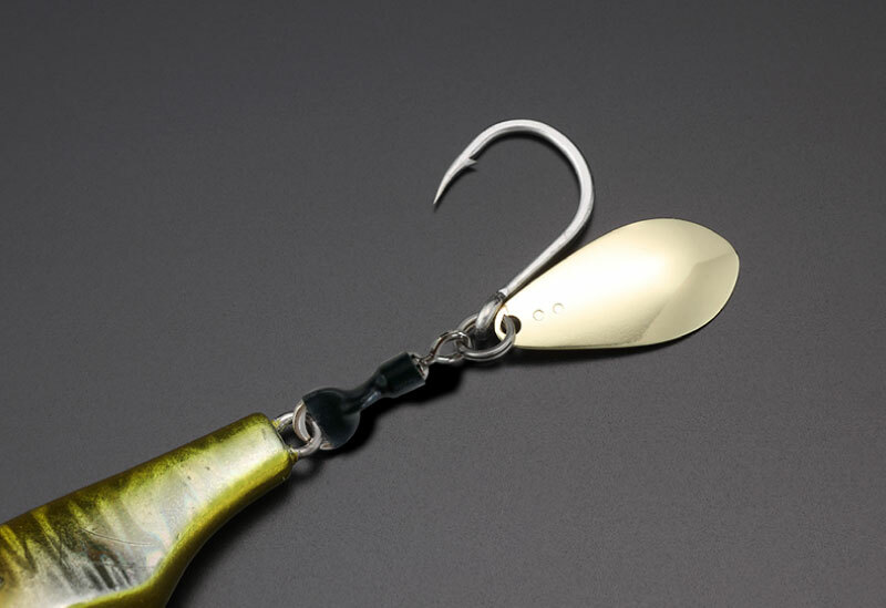 主體與鉤子和旋轉亮片用強力轉環連結在一起並套上熱縮套,主要應對一些利齒的魚類咬中時可有效防止被咬斷,此外,鉤子被安置在亮片旁邊,使得魚在咬亮片時也能同時著鉤。