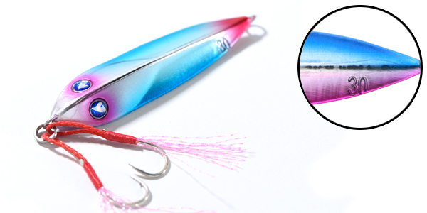 以往的Sea Ride上沒有印上重量,要在餌箱中找到所需重量的鐵板非常麻煩!因此,BlueBlue像Forten系列一樣,在鐵板上刻上重量的克數,讓重量一目了然,由於是刻印,所以不必擔心會有消失的問題!