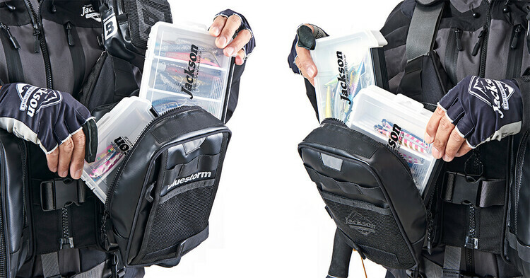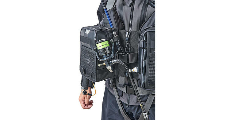 浮力背心兼具大容量收納、高安全性、高耐久性與舒適性。主口袋、鉗夾、飲料架、帆布袋、可移動背袋等,可以充分收納所有需要攜帶到釣場的物品。背心還附有保暖的絨面口袋,在寒冷的冬天提供保暖。