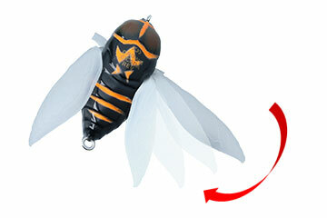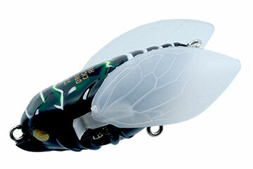觀察虛弱且掉入水中的蟬,注重其羽翼保持閉合的姿態。透過在羽翼上添加彈簧機構,即使在動作後仍能保持閉合的姿態。在投擲時,羽翼不容易張開,能夠以穩定的飛行姿態飛行。在收線時,羽翼會張開並產生拍打的動作,改善了雙掛鉤設計以提升著鉤效果。具有強大貫通力的SapSap鉤的顏色看起來像蟬的腳,營造出自然的感覺。此外,還調整了浮力,使其不容易被側風推移。誕生了進化的蟬形誘餌,改進了輪廓、零件和動作。