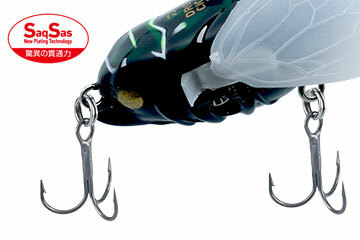 採用了能提高咬鉤率的雙掛鉤設計,使用了含有氟素特殊鍍層的SapSap鉤,其顏色看起來像蟬的腳