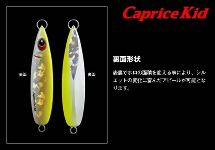 它具有獨特的尾部彎曲設計,短距離的快速拉動中,對於在餌之間擺動時出現的一瞬間鬆弛也能有咬餌反應,能夠有效地引誘魚上鉤。是一款具有卓越吸引力,在釣魚成績上有顯著效果的鐵板。