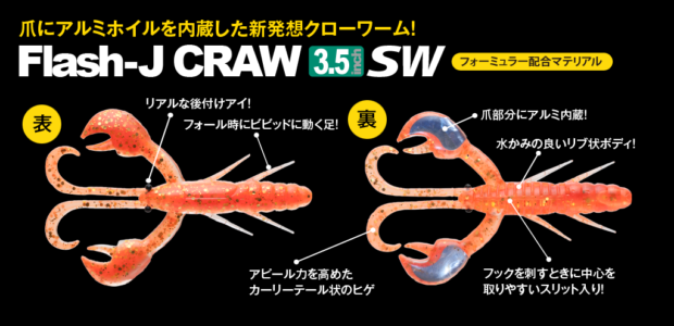 在雙螯的部分加入鋁箔片, 軟蟲落下或是有動作時, 雙螯產生的反光閃爍, 非常擬真的外觀及擬真的眼睛, 一款新型態的螯蝦軟蟲, 除了您慣用的釣組, 也可搭配使用在Free Sinker Jig(活動墜子釣組)