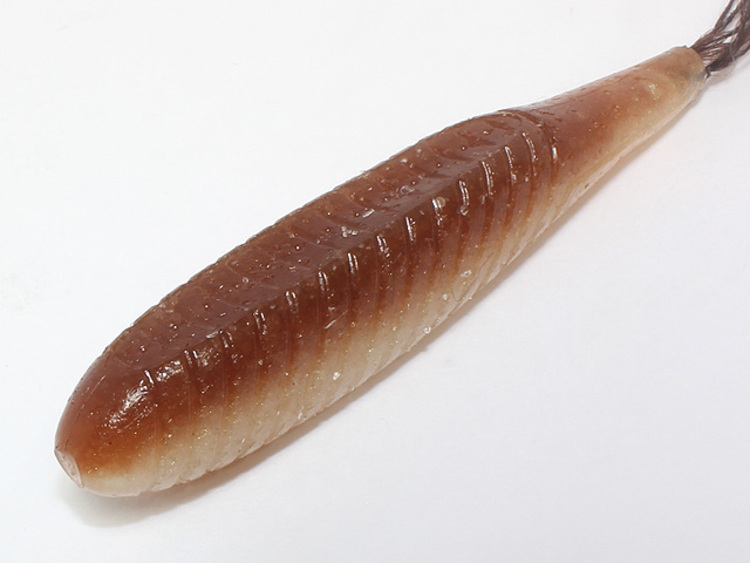 左右兩束毛鬚在下沉過程中抓住水流,讓餌體產生扭動的效果。
