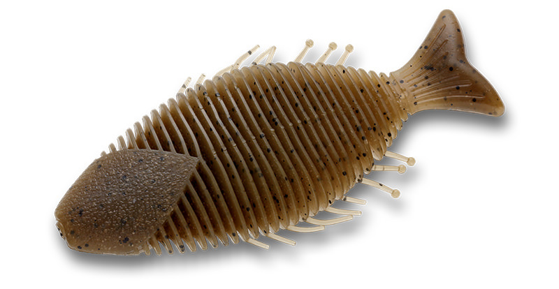 深肋條設計讓魚餌能在水中持續產生氣泡,同時也確保了釘鉛可輕鬆刺入任意部位,以及在鱸魚口腔內易於折疊的最薄厚度,兼顧良好的上鉤性能和使用便利性,成為一款完美的扁平型游泳餌。