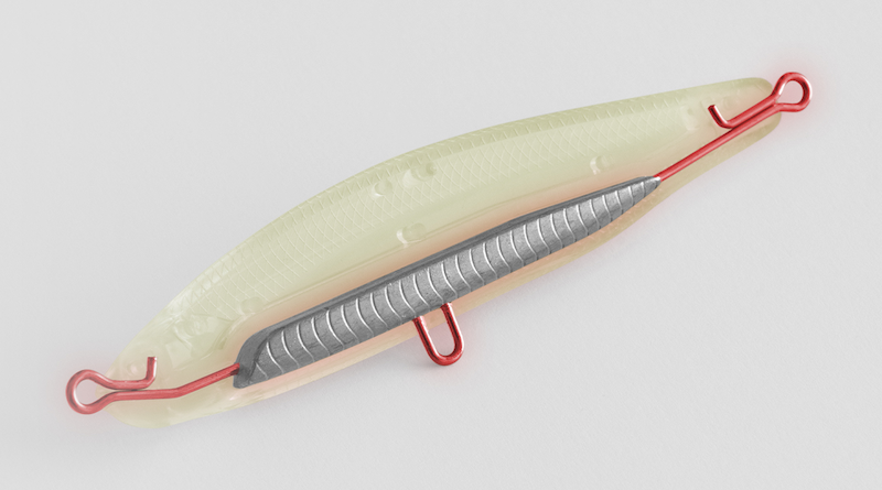 通過在餌身內部鉛錘配重和一體式鋼絲的結構結合在一起,實現了高強度,能夠應對突然出現的大型魚隻,同時低重心實現了穩定的飛行。實現了穩定的泳姿。