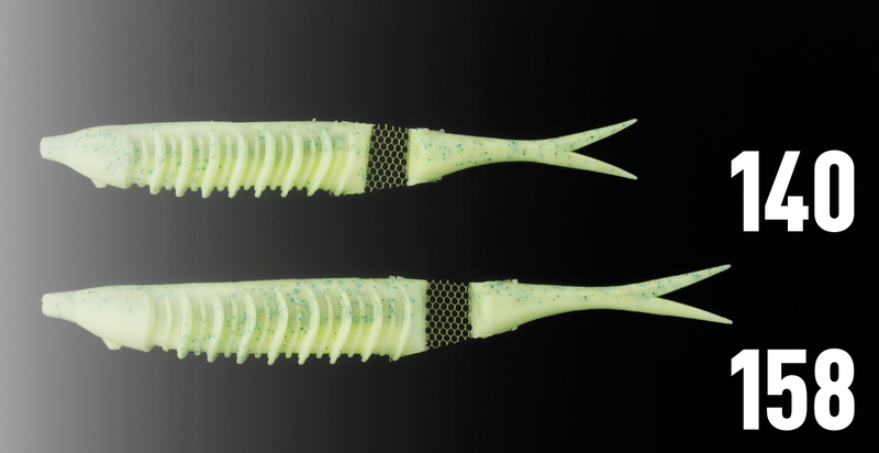 在水質混濁或者在覆蓋物場合,選擇158毫米。在餌魚尺寸較小或者咬餌活性低時,則選擇140毫米。根據情況選擇合適的尺寸。