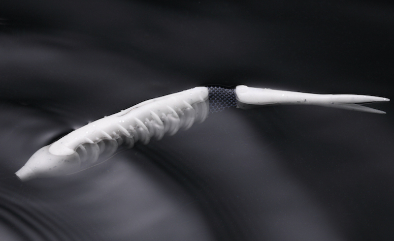 將關節部件設計成無彈性的網狀結構,使得進行遛狗動作更加容易。 此外,靜置時,高度柔軟的尾部只需輕微的水流或風吹即可自發產生動作,吸引魚類上鉤。