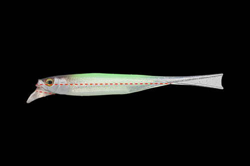 魚身和魚尾的 "扭動 "產生的震動並不強烈,因此很有吸引力。 此外,透過切割尾鰭設計,可以抑制扭轉的發生,並調整產生更自然的振動。 根據實際情況進行相應的設定。