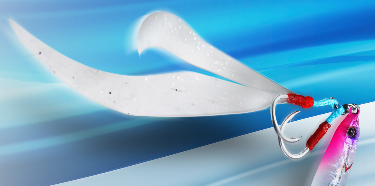 魅惑的膠裙,這款綁製成旗幟般的膠裙採用原創的矽膠製成,在下沉或操作時隨著水流飄動,增強誘魚效果。