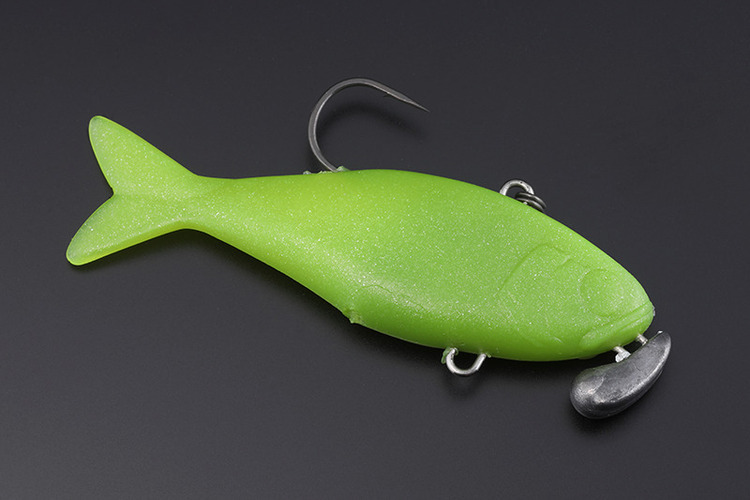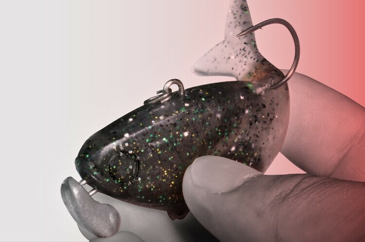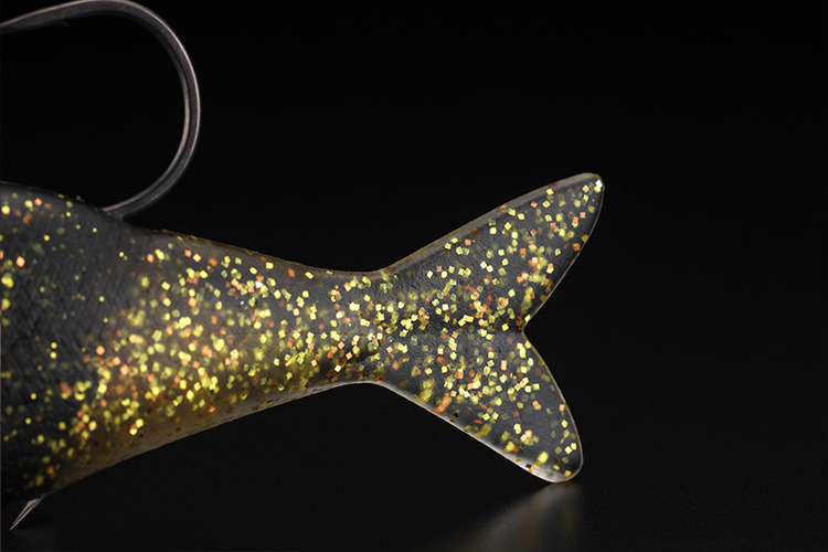 以硬質材料無法達成的自然波動吸引魚類的注意。此外,透過減少魚鉤碰撞身體所產生的聲音,有效對應高壓力場容易受到驚嚇的魚。