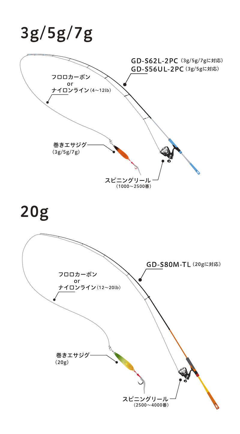 20g型號則配備適應大型魚的厚魚鉤"小磯鈎"。 (魚鉤尺寸:12 號)