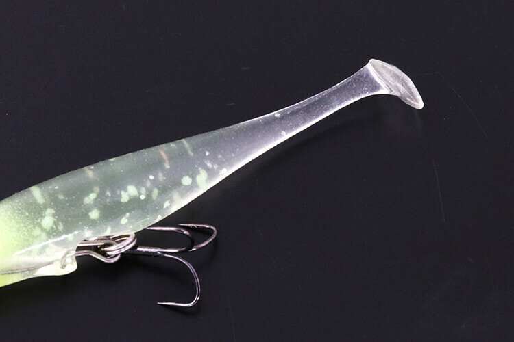 透明的軟體魚身彷彿「擬真的吻仔魚」,即便在嚴峻的釣魚環境中,也能有效誘使黑鯛上鉤。