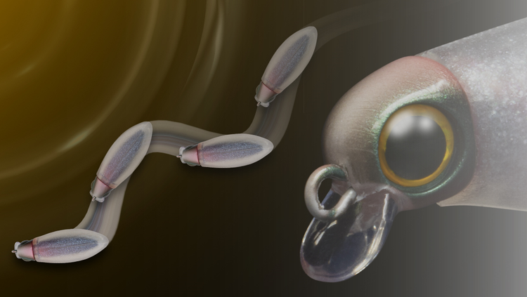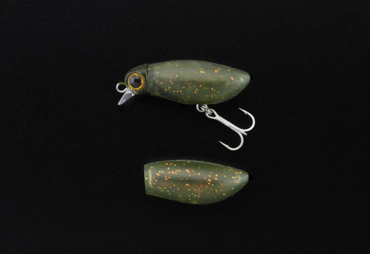 核心部分為一般魚餌的硬材質,外層則包覆柔軟的軟體材質,採用這種特殊的雙層結構設計來提高誘魚效果。