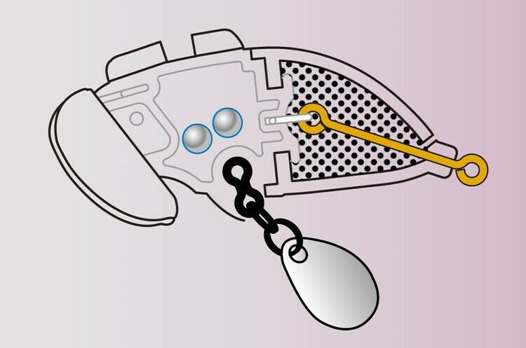通過響珠和亮片吸引,標配的亮片和內置玻璃響珠的聲音刺激著魚的掠食本能。