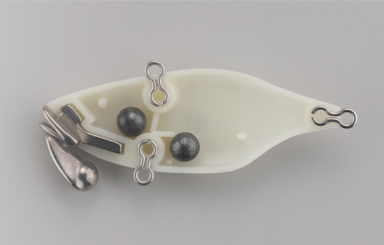 這款餌的本體採用骨質材料,並內嵌兩顆鉛球,產生獨特的低頻敲擊聲。這種聲音能有效吸引大鱸魚的注意,增加釣魚成功率。