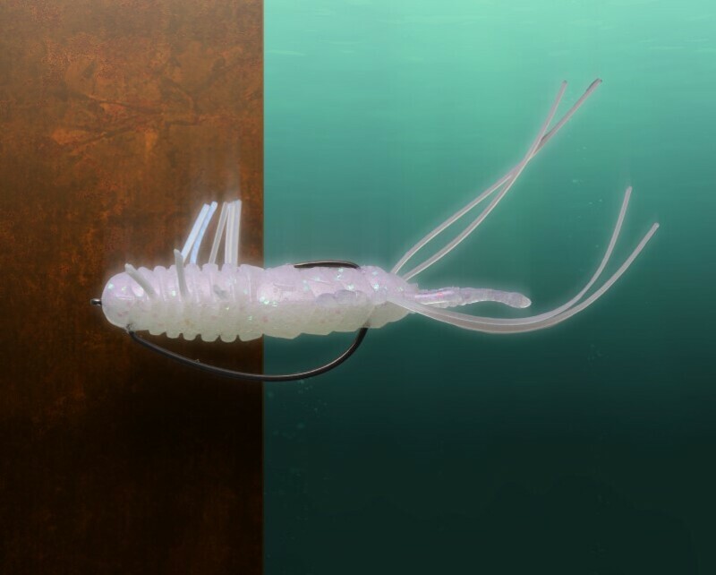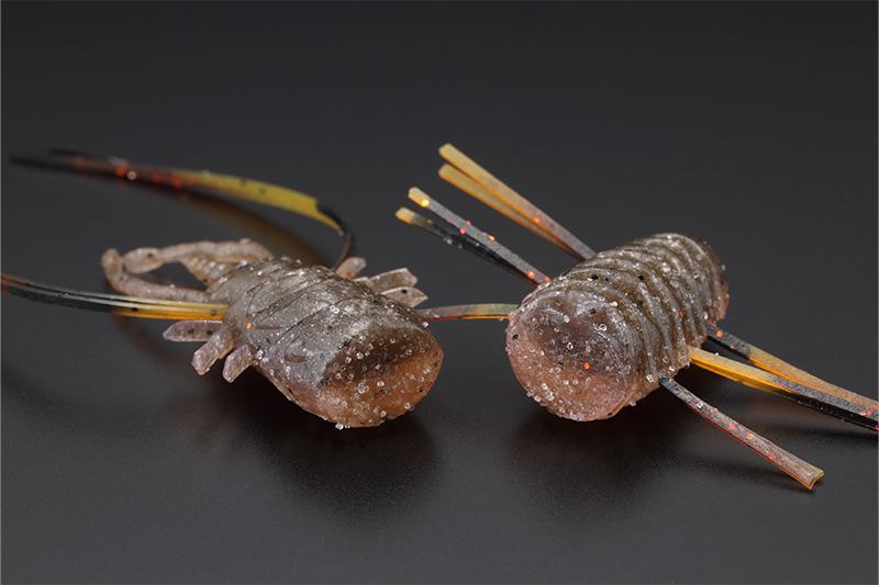 從有觸角的一側設置鉤子,可以表現出長時間緩慢的滑行動作。從覆蓋物前方放下,也能引誘緊張的鱸魚上鉤。