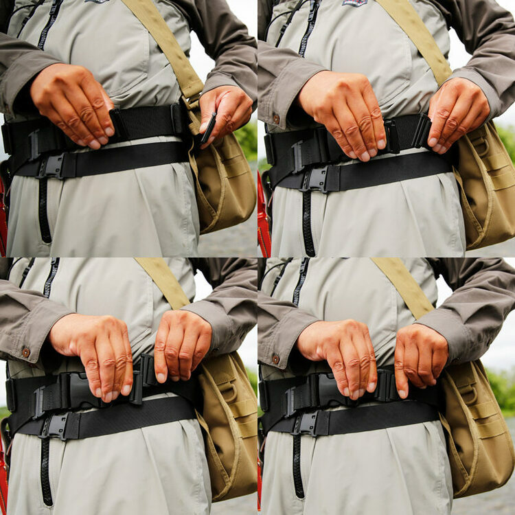 ・將B-28 Stream Watcher肩背包背面的環穿過AC-141滑動腰帶,可以輕鬆將包固定在腰帶上,減輕肩膀的負擔,防止包移位,提高釣魚的集中度。※請參考照片。