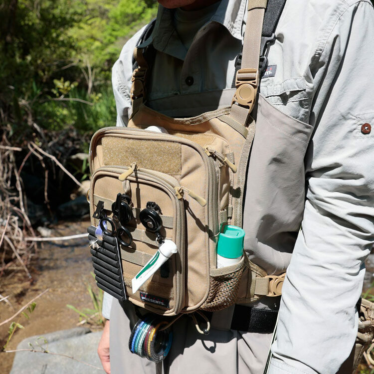 ・路亞盒、前導線、浮標、鉛錘、等作釣需用到的小配件可以井然有序地收納在胸前包