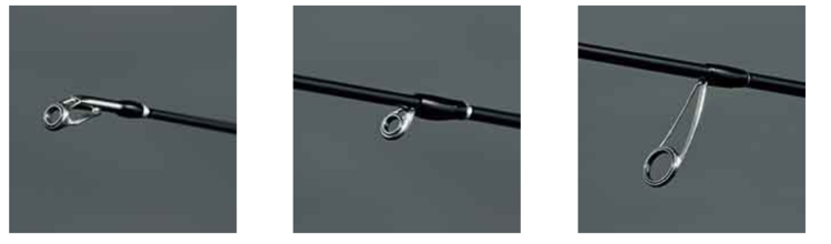 導環採左旋(反時鐘方向)螺旋排列,將頂端導環向下設計,有效減少長竿在收線時的竿尖晃動,提升穩定性。
