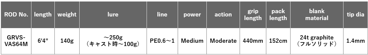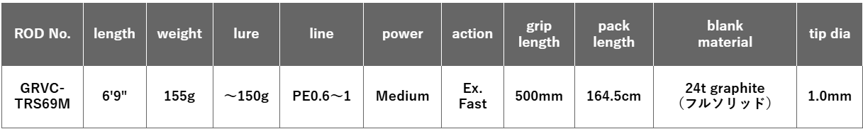 GRVC-TRS69M、GRVS-VAS64M 採用 24t 碳布製成的全實心竿身(Solid Blank),著重於韌性與剛性。