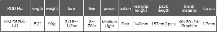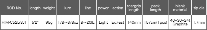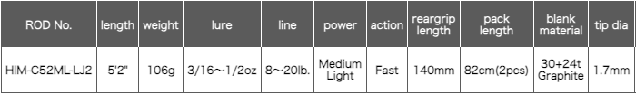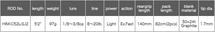LJ型號致力於更有效地操作超過100毫米的擬餌。為了創造適合這種尺寸擬餌的期望動作,將快速錐度動作融入到魚竿中,同時保持足夠的力量來處理較大的擬餌。因此,這款魚竿的通用性得到了擴展,不僅適用於Zaraspook大小的鉛筆擬餌,還適用於P65和P71等popper擬餌,以及青蛙式擬餌等,甚至能夠應對障礙物周圍的複合式旋轉亮片和淺水的CRANK等策略,展現出多樣攻擊性的釣魚技巧。即使是兩截式設計,也充分注重平衡,確保其拋投效率與一截式設計相當。