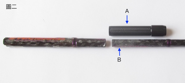選擇A金屬包頭的內徑, 就是量釣竿B底部的直徑