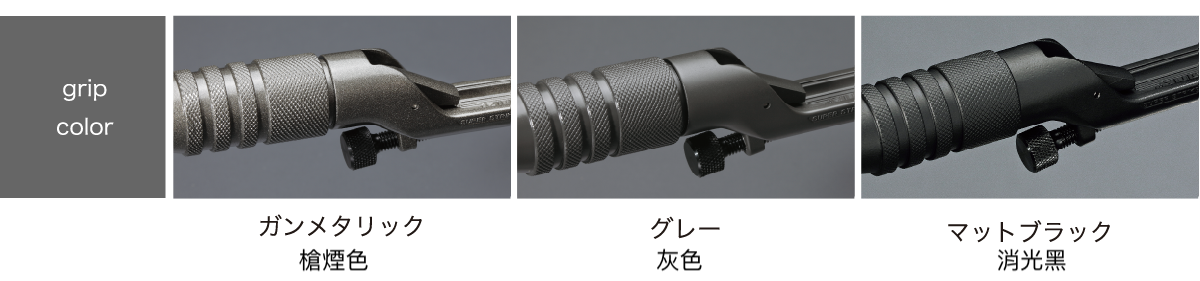 採用超輕量的鋁鎂合金, 使得這革命性的槍柄握把有適當的重量, 能穩定拋投性能, 握把下凹偏移的設計, 使得捲線器能與釣竿在同一中心上, 新的釣竿金屬箍安裝機構, 能讓SuperStrike釣竿與鎂合金握把100%相容。