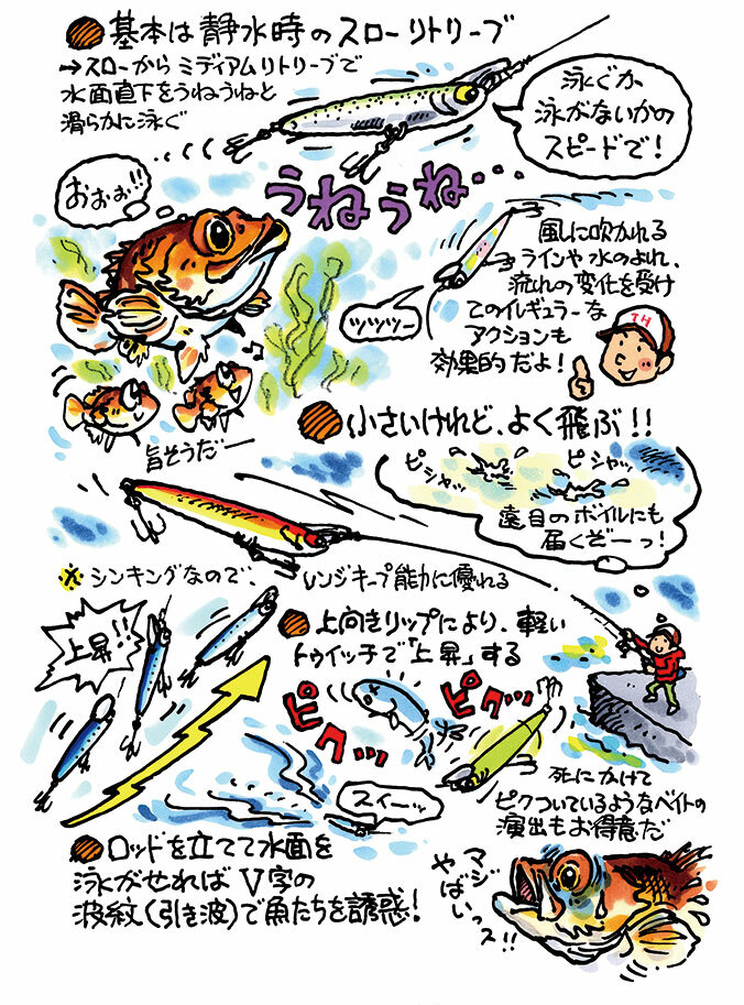 這一款是針對海水根魚小搞搞,泳層就在水面直下(接近水面),