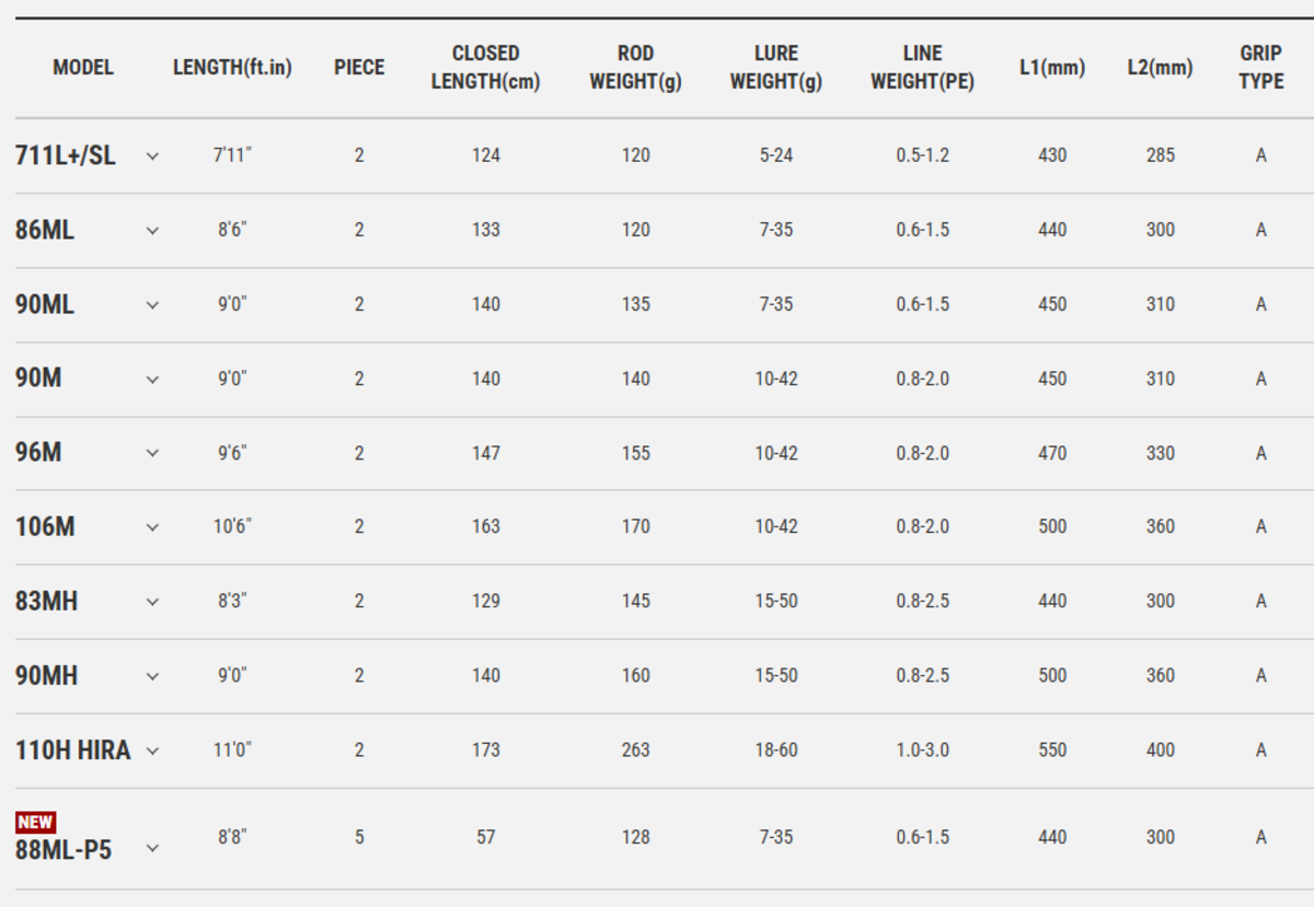 新的竿材兼具堅固及柔韌, 很好的拋投性能及準投, 很高的感度傳遞路亞在水中的狀態, 路亞的操作能讓你瞬間的改變動作, 竿身滑順的彎曲能吸收魚瞬間的的跳躍或是甩頭, 減少脫鉤, 釣竿整體的平衡性非常的良好, 拋投一整天也不容易疲累, 減少體力下降而分心, 好專注在搜索海鱸上, 這系列有多種規格, 好對應各種場合, 例如, 港灣, 河川, 河口, 防波堤, 礁岩, 灘投, 等等