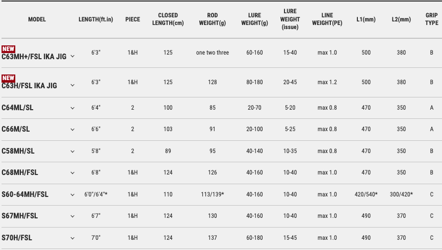 *SL表示實心竿先,FSL表示全實心竿坏