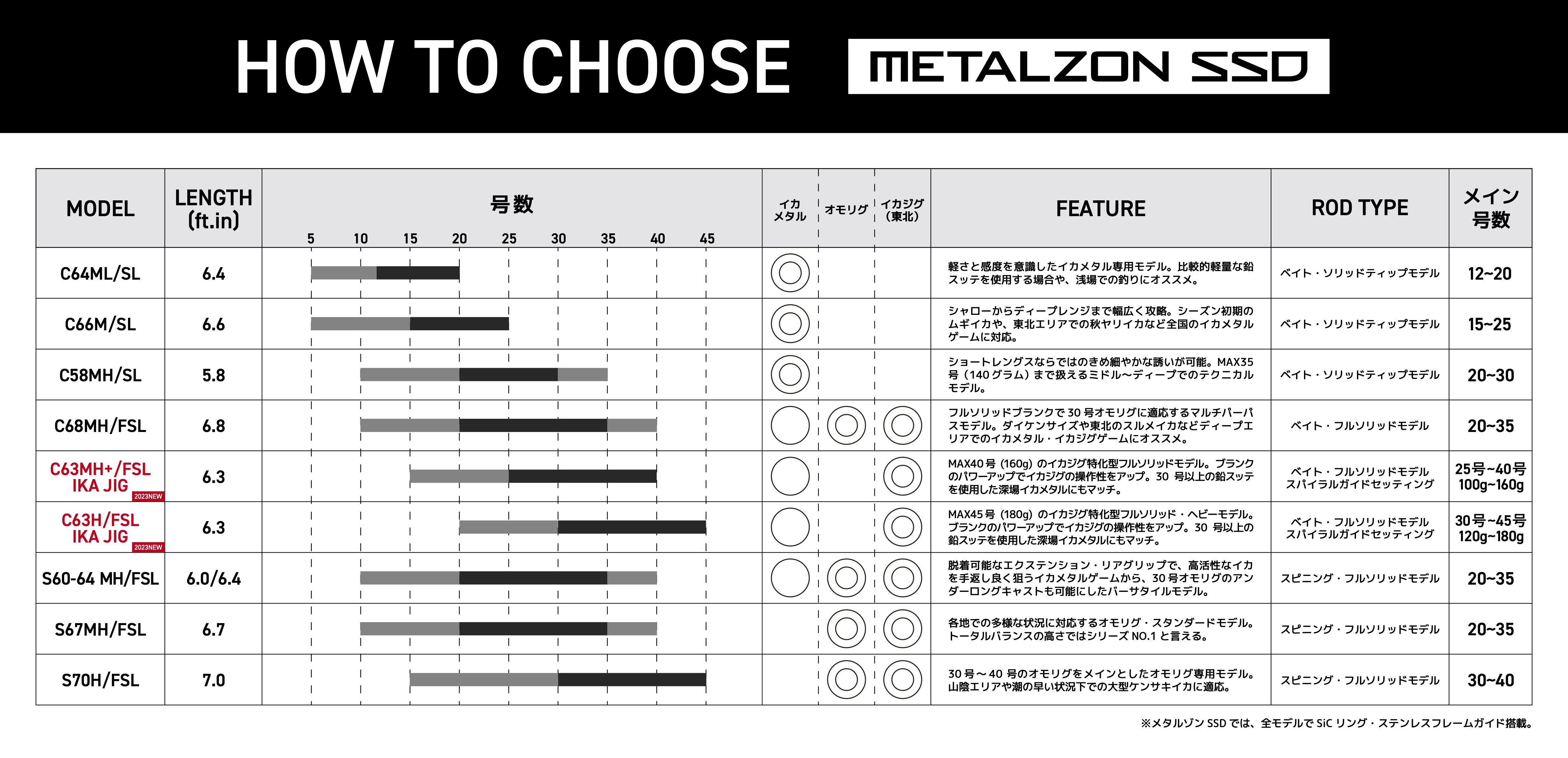 適合重量級釣魚者的全實心竿胚型號,特別適用於潮流急速且使用輕錘無法應對的情況,或者當魷魚沉入極深的水域時,這支竿將成為最佳選擇。竿梢的力量非常大,即使是巨型魷魚上鉤後也能應對。為了改善PE線的結節問題,並避免PE線纏住水母等問題,將部分的導環直徑設置得較大,以確保流暢的釣魚體驗。