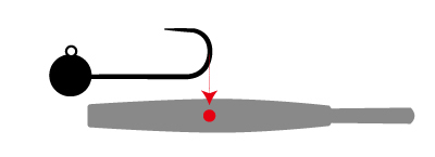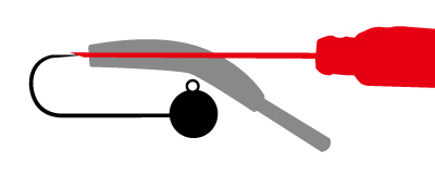 將針向後推,讓級頭鉤的鉤子整個穿過軟蟲。