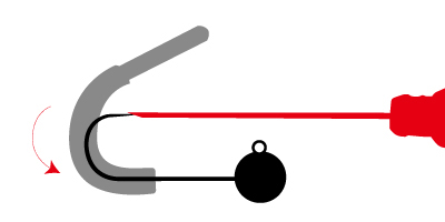 將鉤子的末端插入針孔。