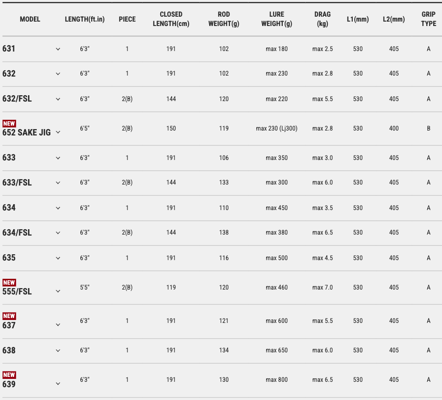 獨特的新標準 Slow Pitch Jerk釣竿系列有兩個陣容,一個是管狀竿材,第二個是全實心(FSL)竿材。由於這些結構的不同,釣魚者可以依據自己的策略選用適當的竿材,擴大可能性。