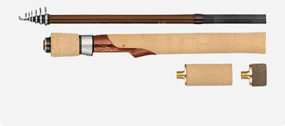 通過新的設計,將振出釣竿部分和手柄部分的機構獨立分離,來縮短收納尺寸。